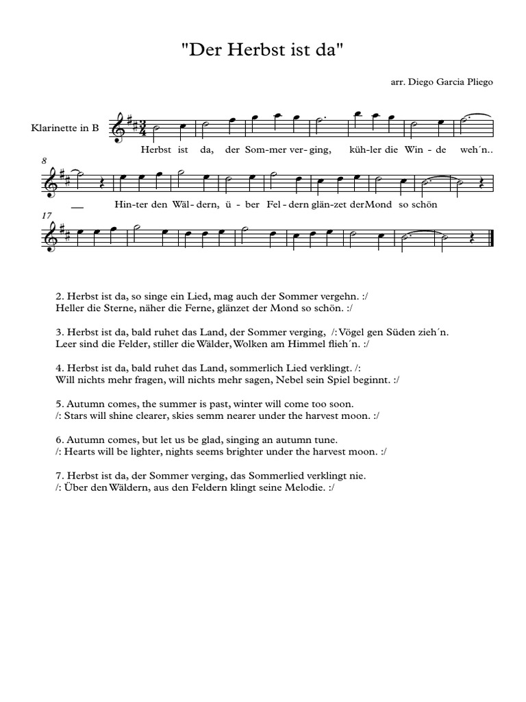 Der bunte Herbst Der bunte Herbst zieht durch das Land. Es scheidet der Sommer der Herbst schon ist nah Es scheidet der Sommer der Herbst schon ist nahes welken die Blumen wohl hier und wohl daSo lasst uns noch einmal im Freien ergehennoch einmal uns. Mit Noten als PDF.